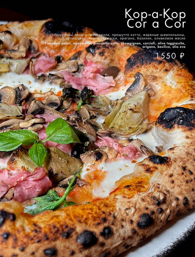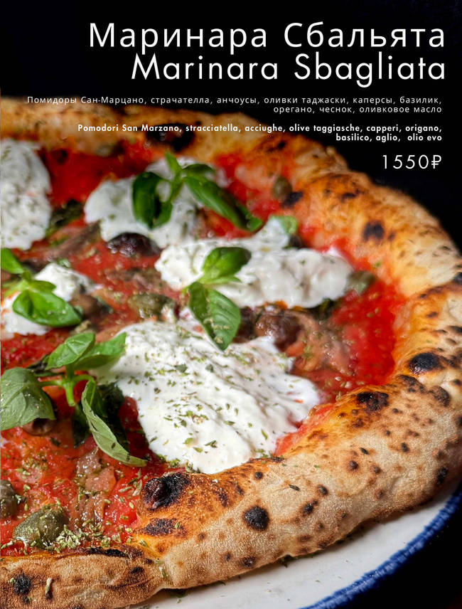 Настоящая неаполитанская пиццерия с её чарующими ароматами, яркой палитрой и неповторимостью. Печь всегда растоплена, а пицца и закуски готовятся на ваших глазах. Атмосфера пропитана вкусами традиционной партенопейской кухни.